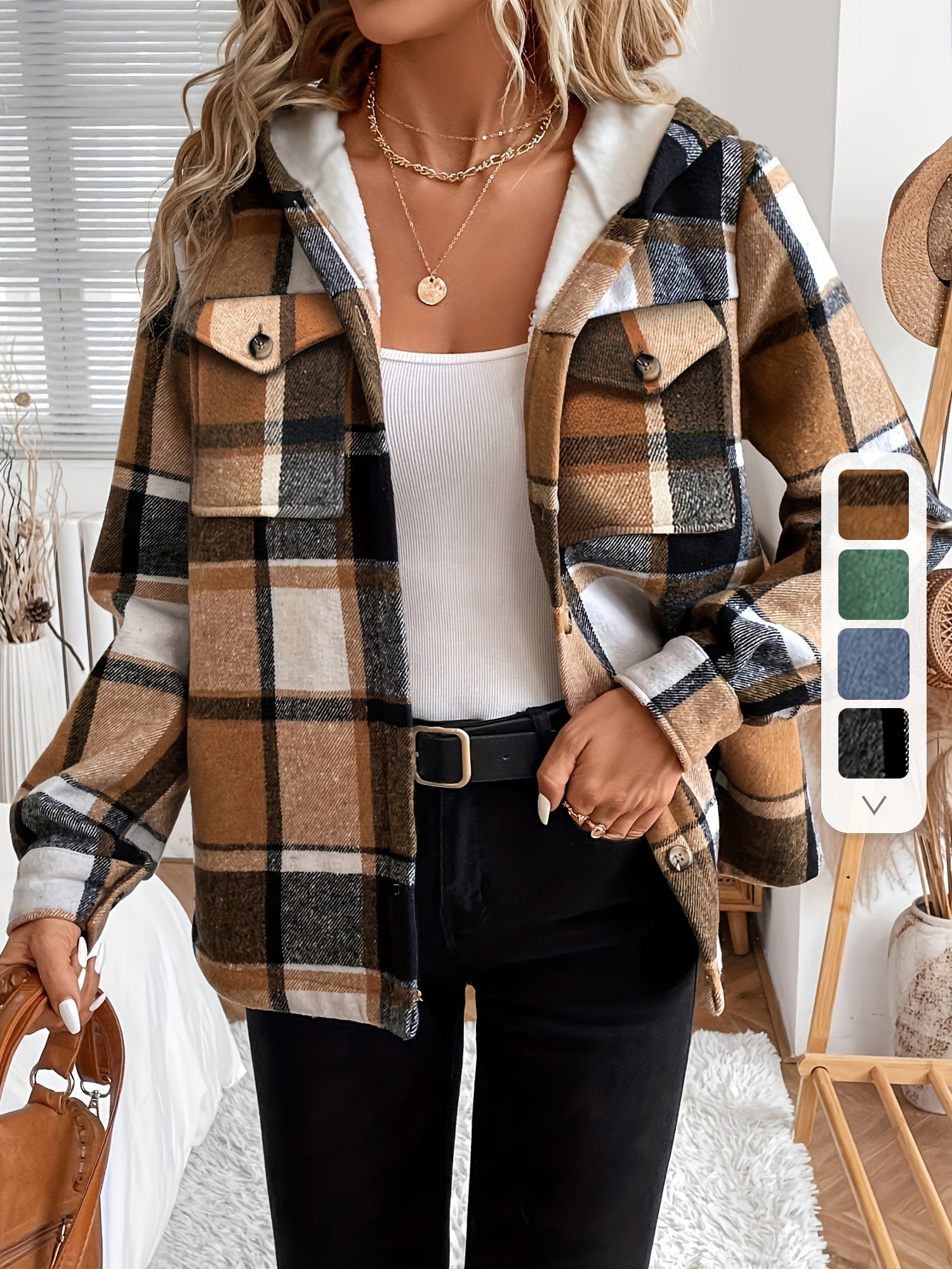 Voel je comfortabel en stijlvol in deze geruite hoodie jas met zachte fleece voering. Perfect voor elk seizoen en eenvoudig te combineren met je casual outfits.